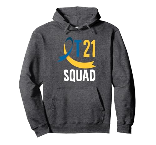 T-21 Support Squad Blue Yellow Ribbon Syndrome Awareness Pullover Hoodie, Adult Unisex, Dark Heather Grey, Medium
