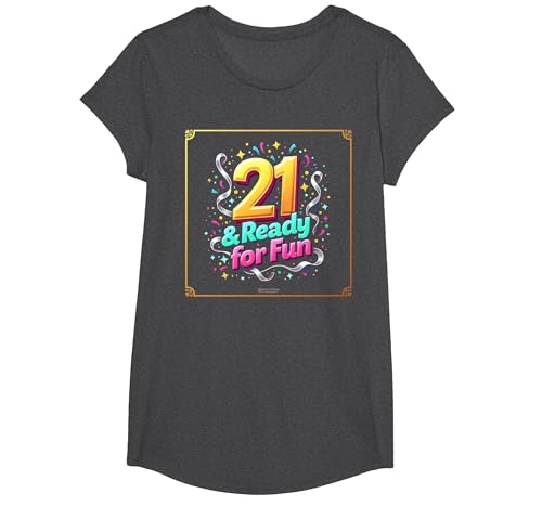 Twenty-One & Ready for Fun: 21st Birthday Gift T-Shirt, Girls, Dark Heather Grey, Medium