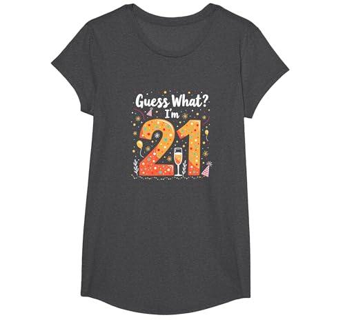 21st Birthday Gift - Guess What? I'm 21 Celebration T-Shirt, Girls, Dark Heather Grey, Medium