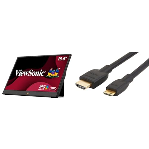 Viewsonic VA1655 47 cm (16 Inch) Portable Monitor (Full HD, IPS Panel, Mini-HDMI, 2x USB-C & Amazon Basics Mini HDMI to HDMI Adapter Cable, 18Gbps High-Speed, 4K@60Hz, 2160p, 48-Bit Color