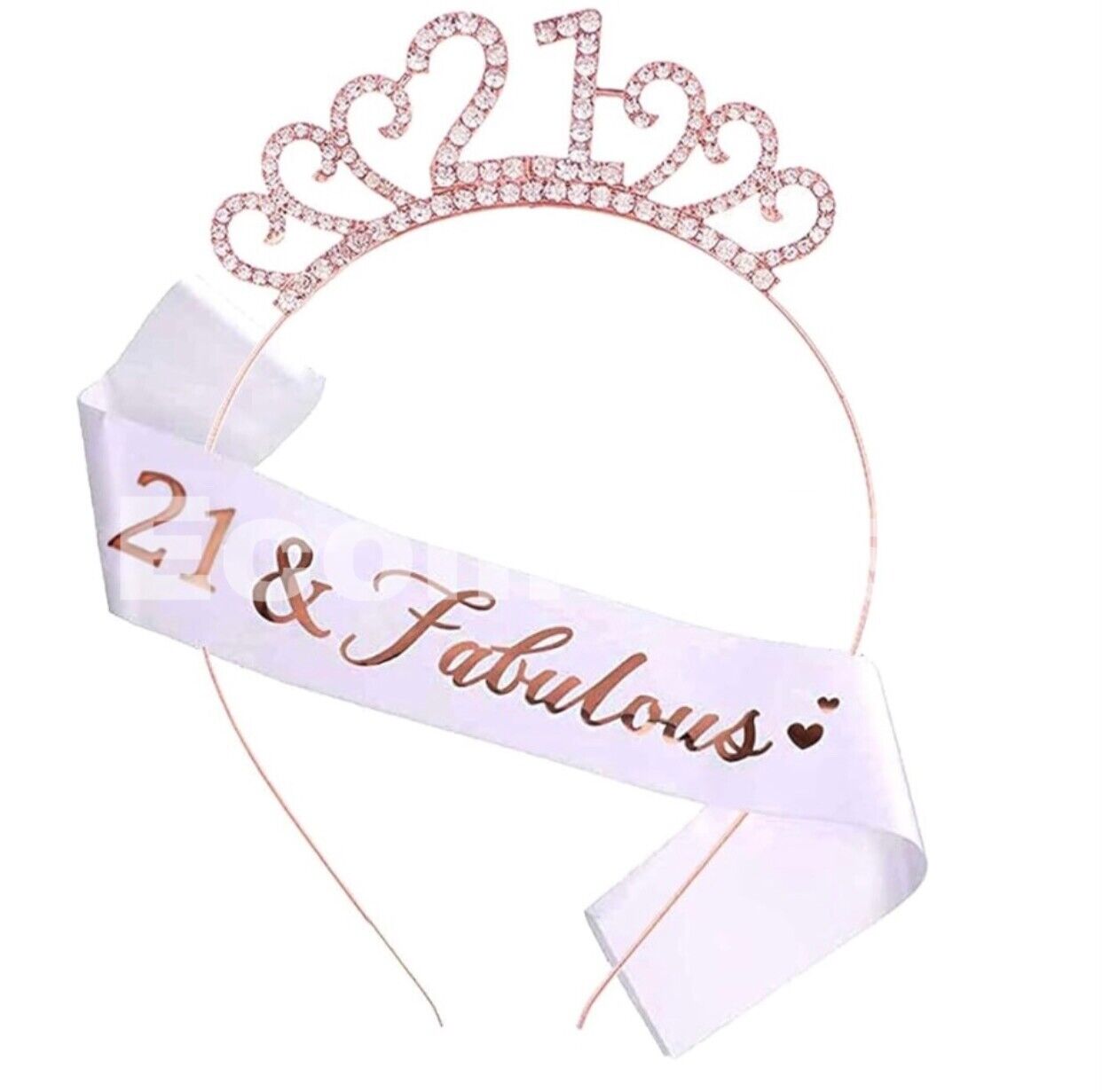 21st Birthday Sash Tiara Set - Rose Gold Birthday Sash & Tiara, Sparkling Birthday Accessories for Women, Perfect for 21st Birthday Celebrations