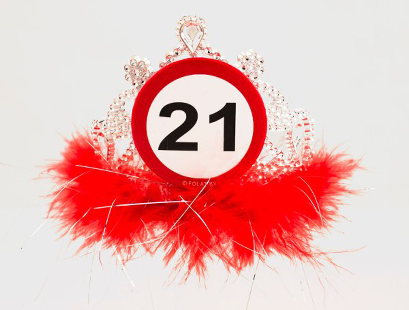 21ST BIRTHDAY FEATHERY TIARA TRAFFIC SIGN AGE PARTY