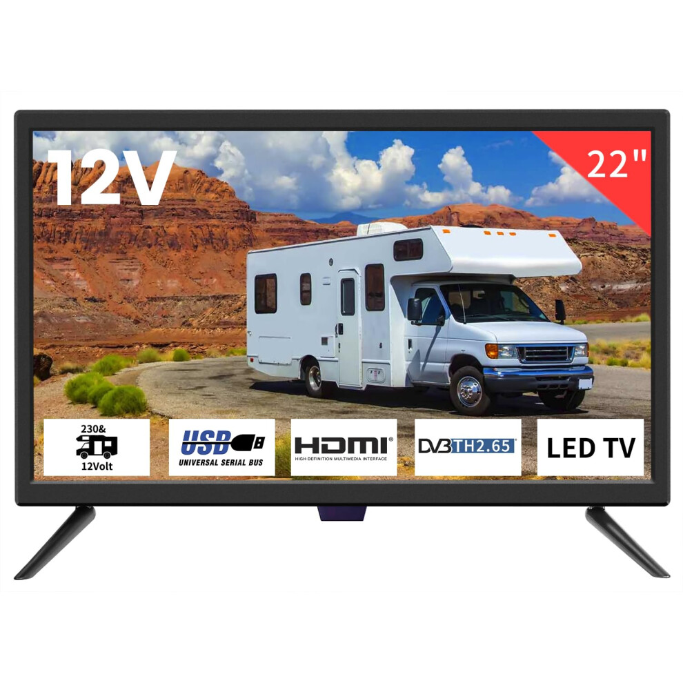 22 Inch 12 Volt LED Digital Full HD 1080p TV DVB-T2 /C/S2 Freeview,