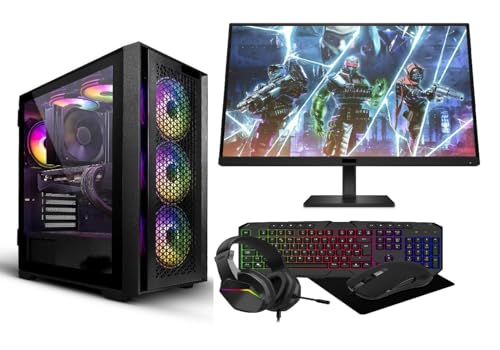 Veno Scorp ARGB Gaming PC - i5, 240GB SSD, 500GB HDD, 8GB RAM, 22” Monitor, Win 10, WiFi - NeonZilla