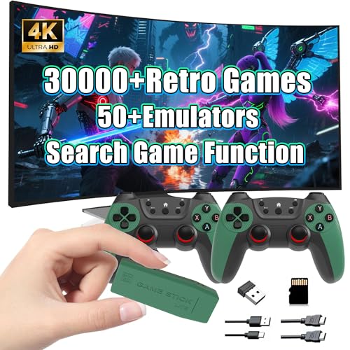 M22 U Retro Game Stick 4K, Retro Emulator Game Console with Built in 30000+ Retro Game 50+ Emulator, Plug and Play Retro TV Game, with 2.4G Wireless Controller, Support Search Games (64GB, Green)
