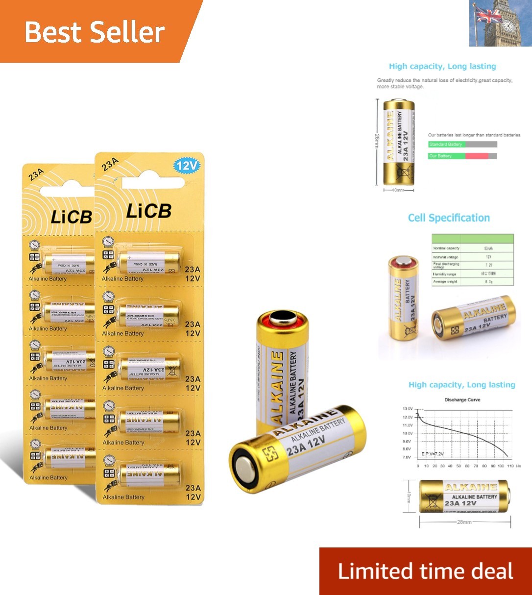 23A 12V Alkaline Battery A23 / MN21/23/ L1028 / V23GA / LRV08 for remote controls,wireless doorbells,security systems(10Pcs)