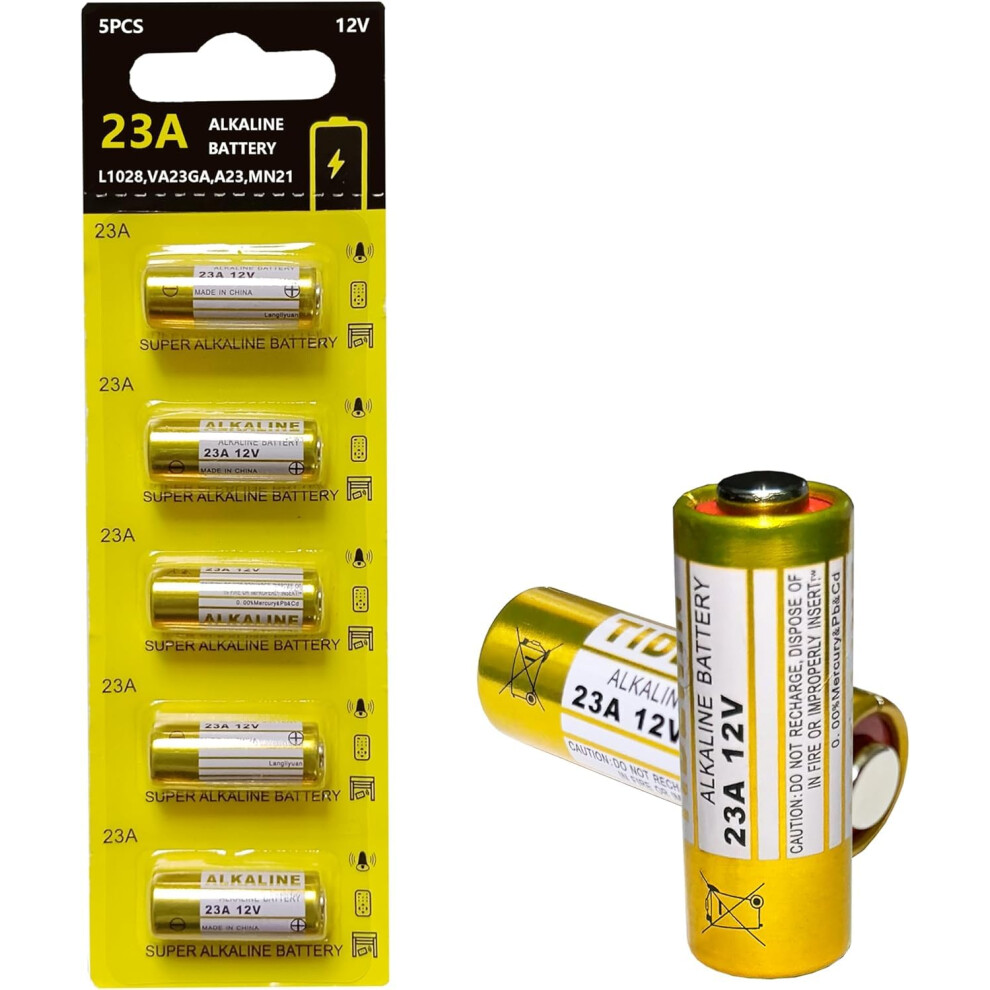 23A 12V Alkaline Battery A23 / MN21/23/ L1028 / V23GA / LRV08 for remote controls,wireless doorbells,security systems(5Pcs)