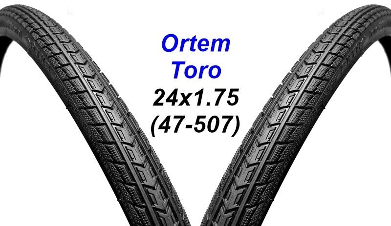 2x 24" Mountain Bike Tyres 24x1.75 (47-507) Fast Rolling Tread - Ortem Toro Pair