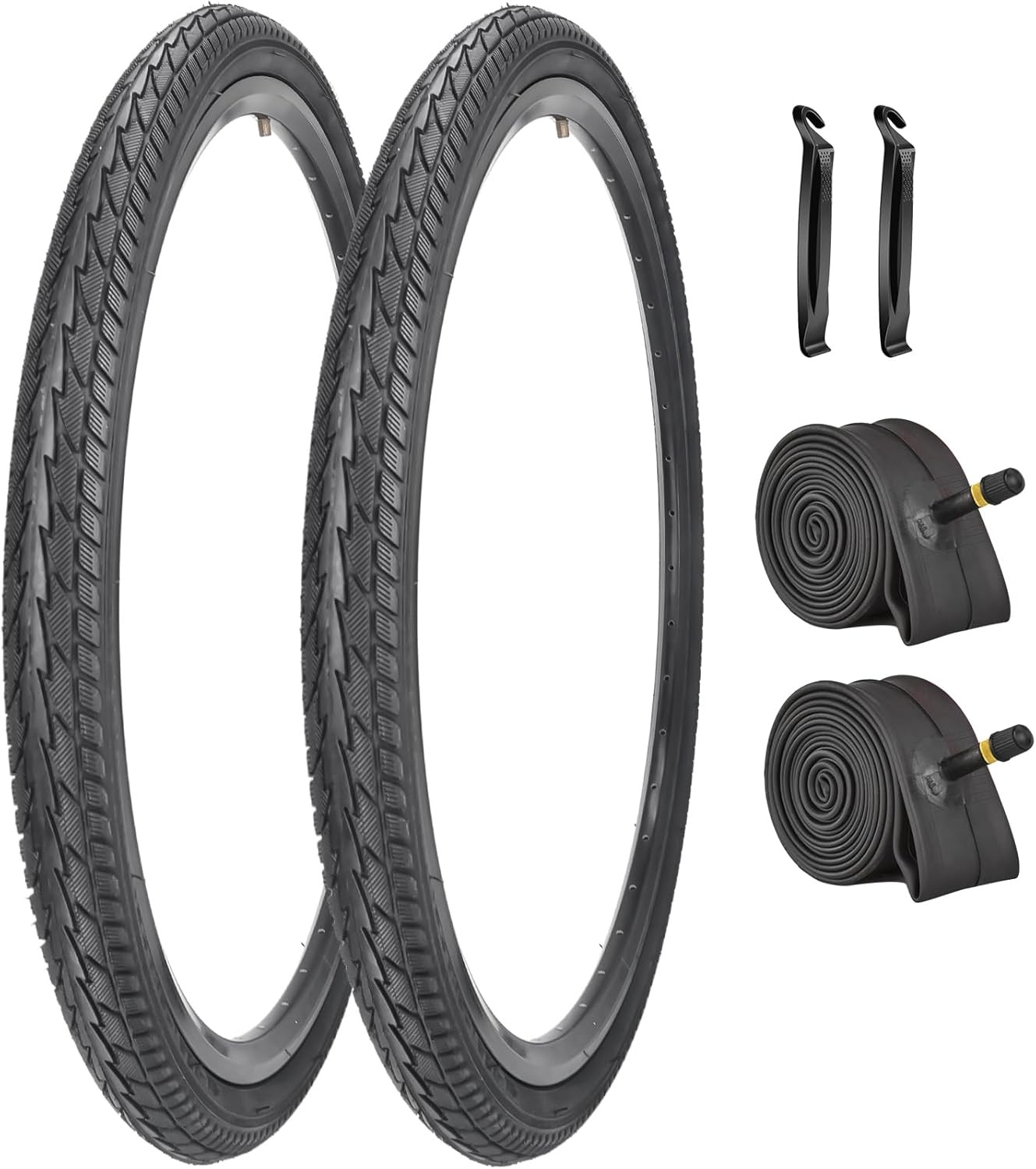 YUNSCM 2-PCS 24" Mountain Bike Tires 24x1.75 tires 47-507 and 24" Bike Tubes Schrader Valve Compatible with 24 X 1.75 Bike Bicycle Tires and Tubes (Y-674)