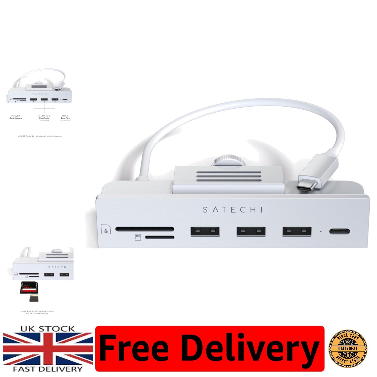 Modern USB-C Clamp Hub: Fast Access for 24-Inch iMac Users – Silver Finish