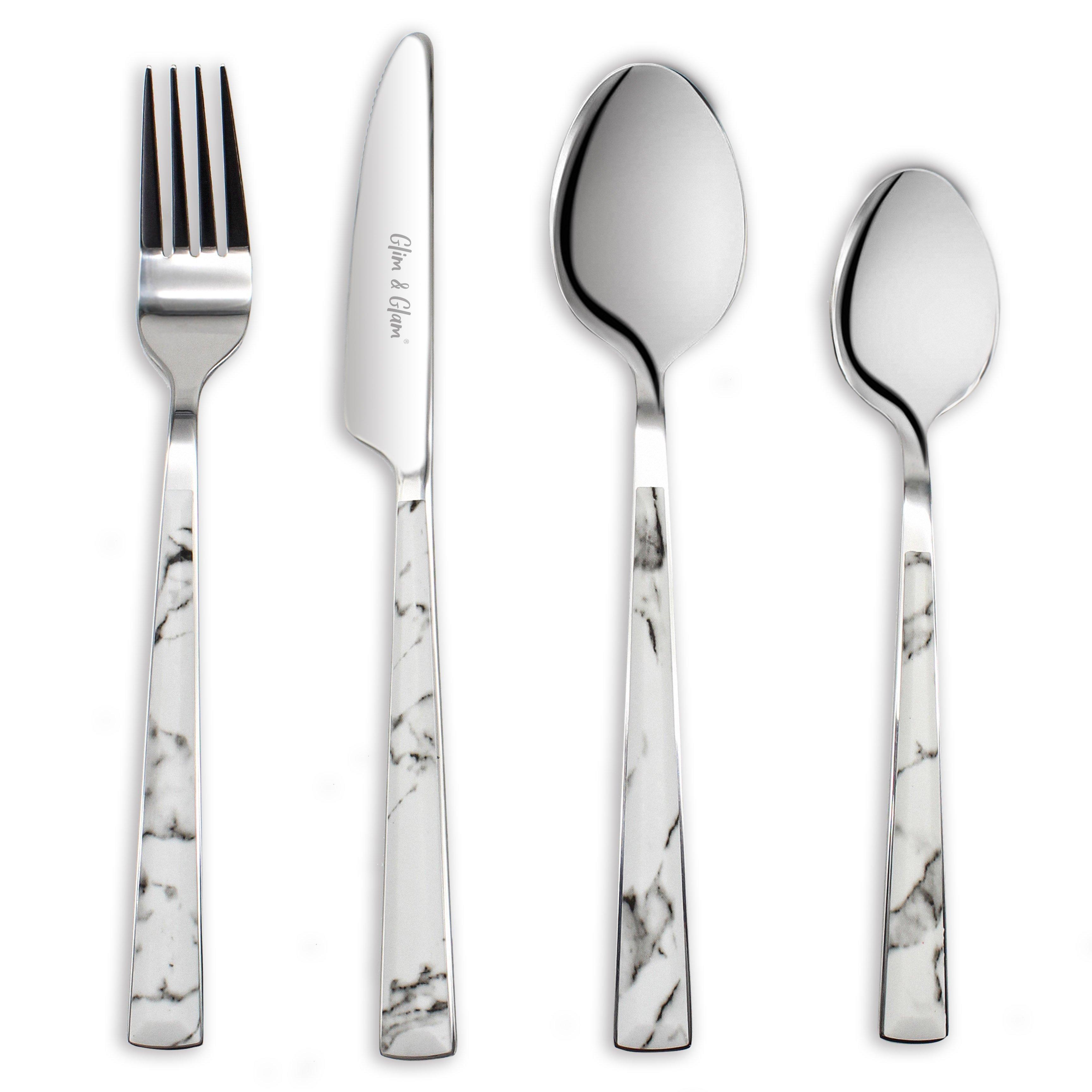 Cutlery Sets 24 Piece Set Knife Fork Spoon Marble Decal Handle