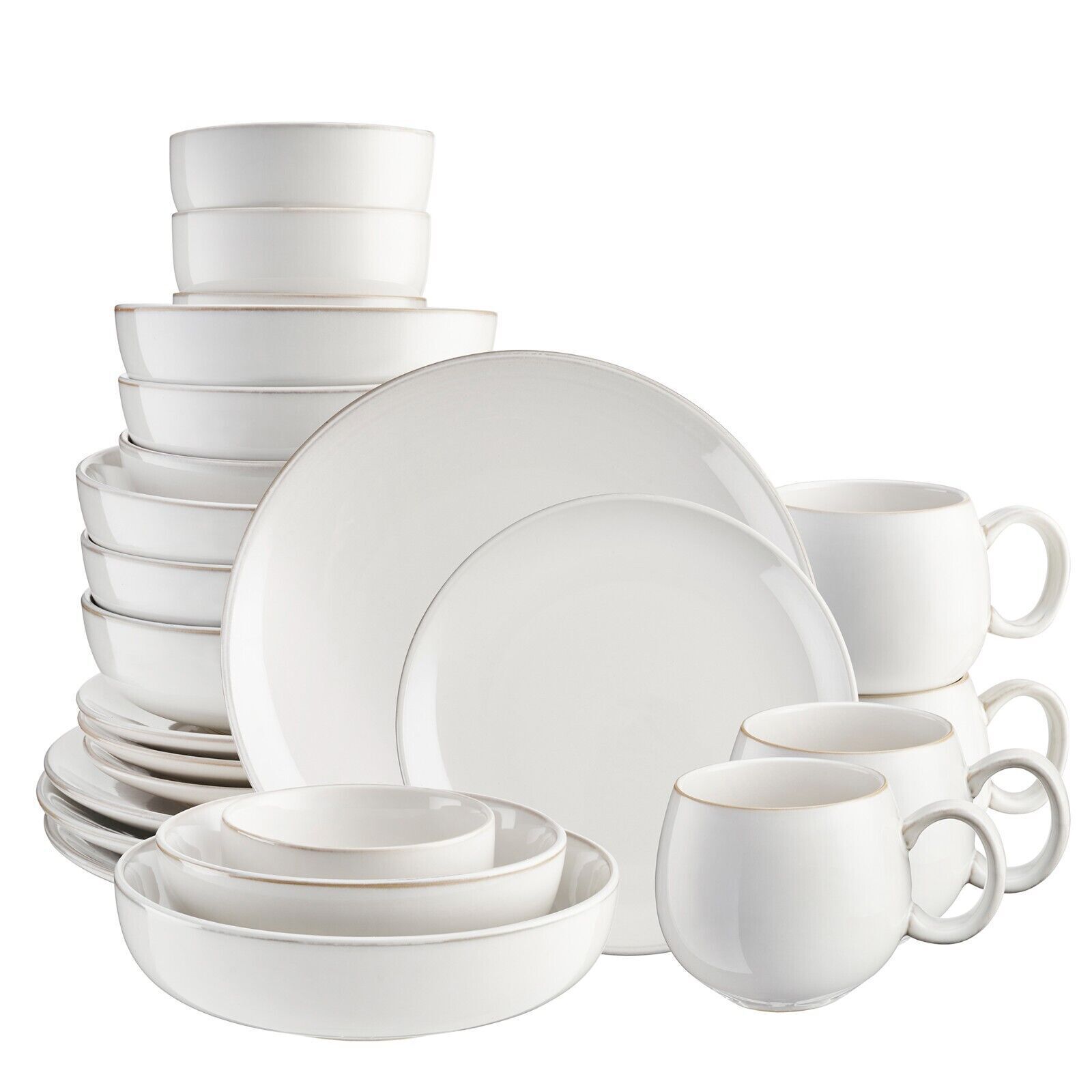 Stoneware Dinner Set 24 Piece Nordic Plate Bowl Mug Dish Kitchen Crockery White