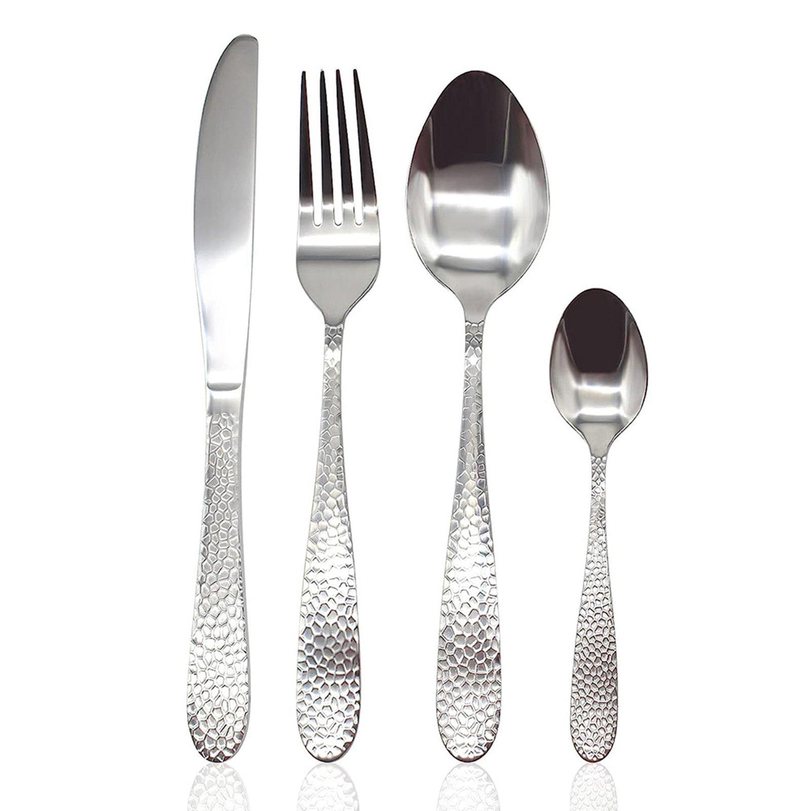 Cutlery Sets Stainless Steel Hammered Effect Handle 24 Piece Set