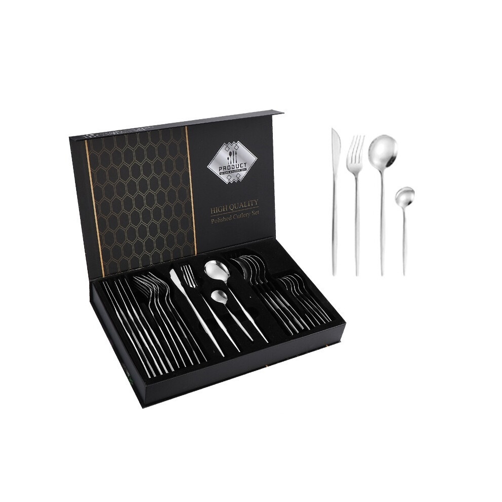 24 Piece Silver Cutlery Dinner Set Stainless Steel Dishwasher Safe Utenils Set