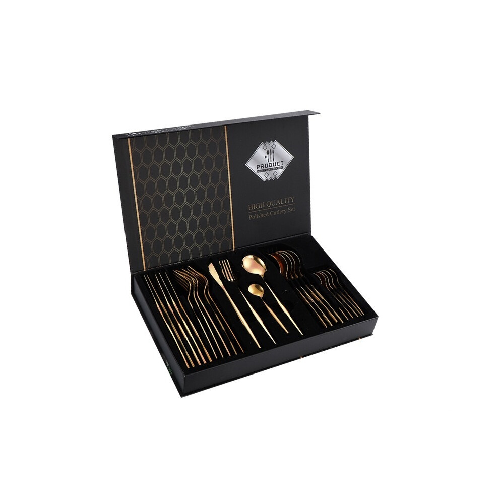 (Gold) 24-piece steak knife and fork set, 24-piece dinner knife set