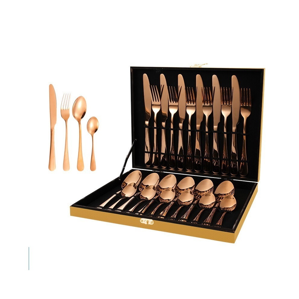 (Rose Gold) Steak Knife/24-piece Dinner Knife Set, Steak Knife and Fork Set