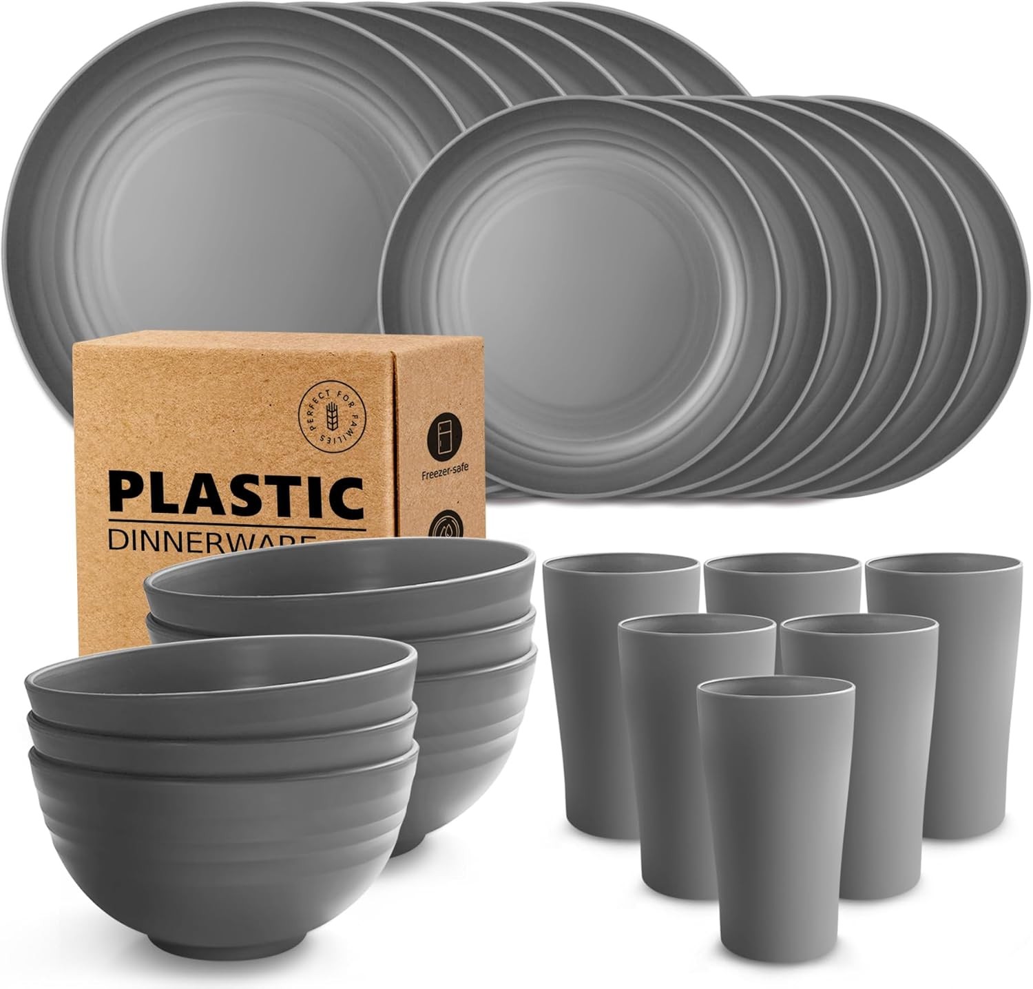 Teivio 24-Piece Kitchen Plastic Dinner Set, Service for 6, Dinner Plates, Desse