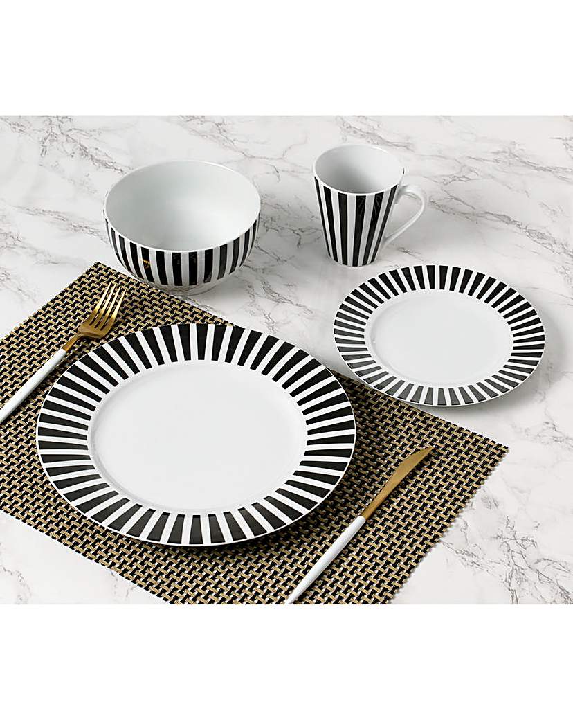 Waterside Stripe 24 Piece Dinner Set Monochrome - Waterside
