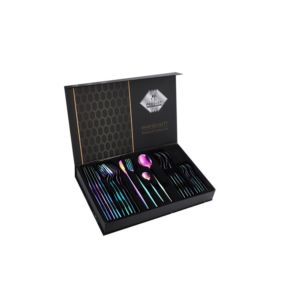 (Colorful) 24-piece steak knife and fork set, 24-piece dinner knife set