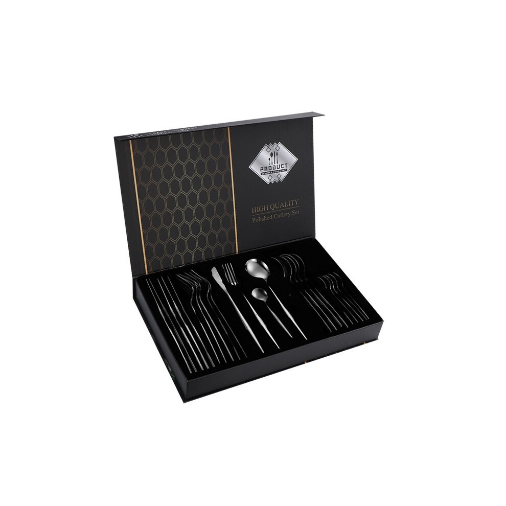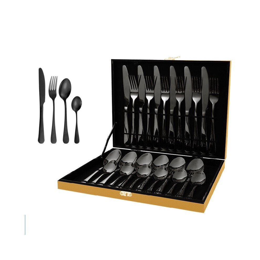 (Black) 24-piece steak knife and fork set, 24-piece dinner knife set