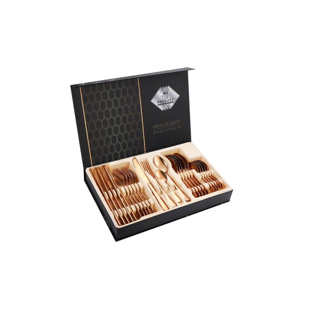 (Red gold) Steak Knife/24-piece Dinner Knife Set, Steak Knife and Fork Set
