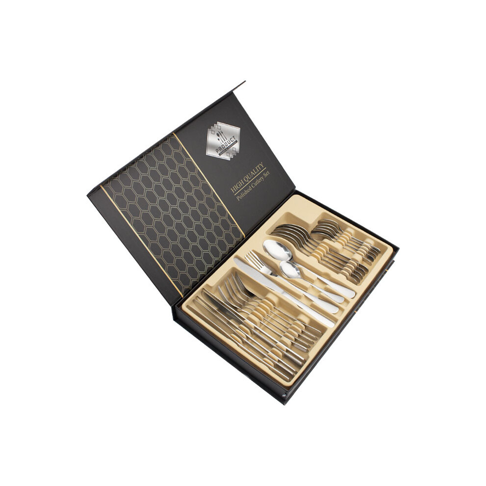 (Gold) [24] piece steak knife and fork set, 24 piece dinner knife set