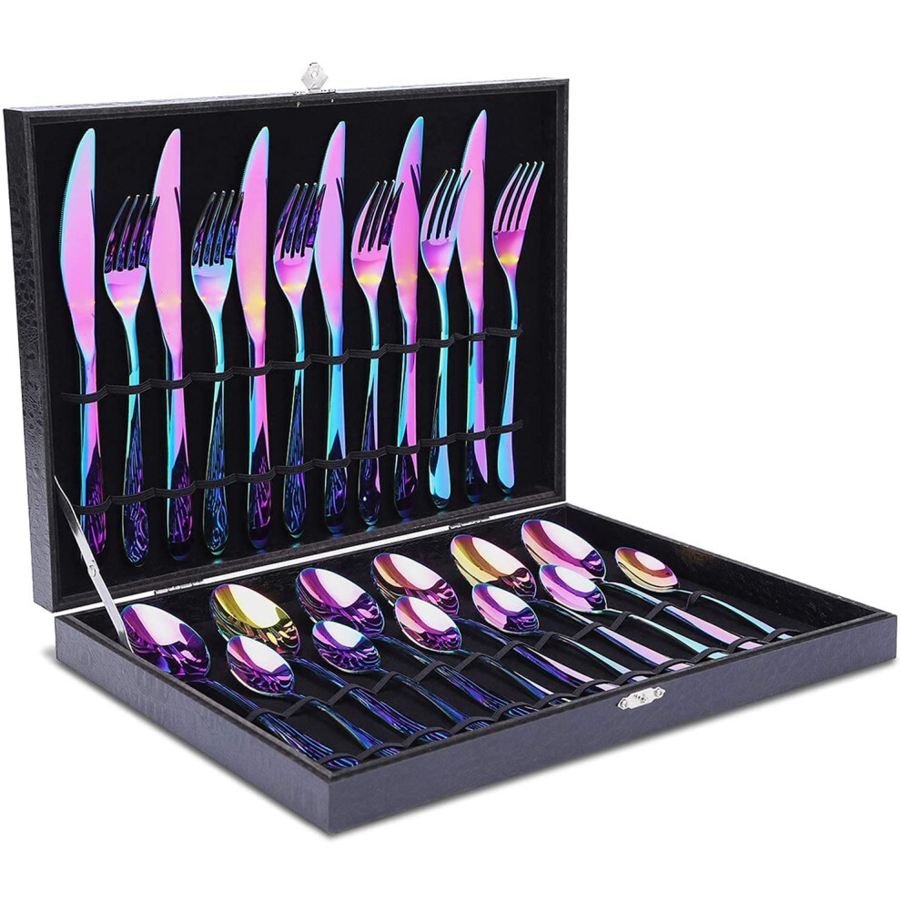 Rainbow Cutlery Set, 24 Piece Flatware Set Stainless Steel Silverware Set 6 People Dinnerware Cutlery Set with Knife Fork Spoon for Home Restaurant