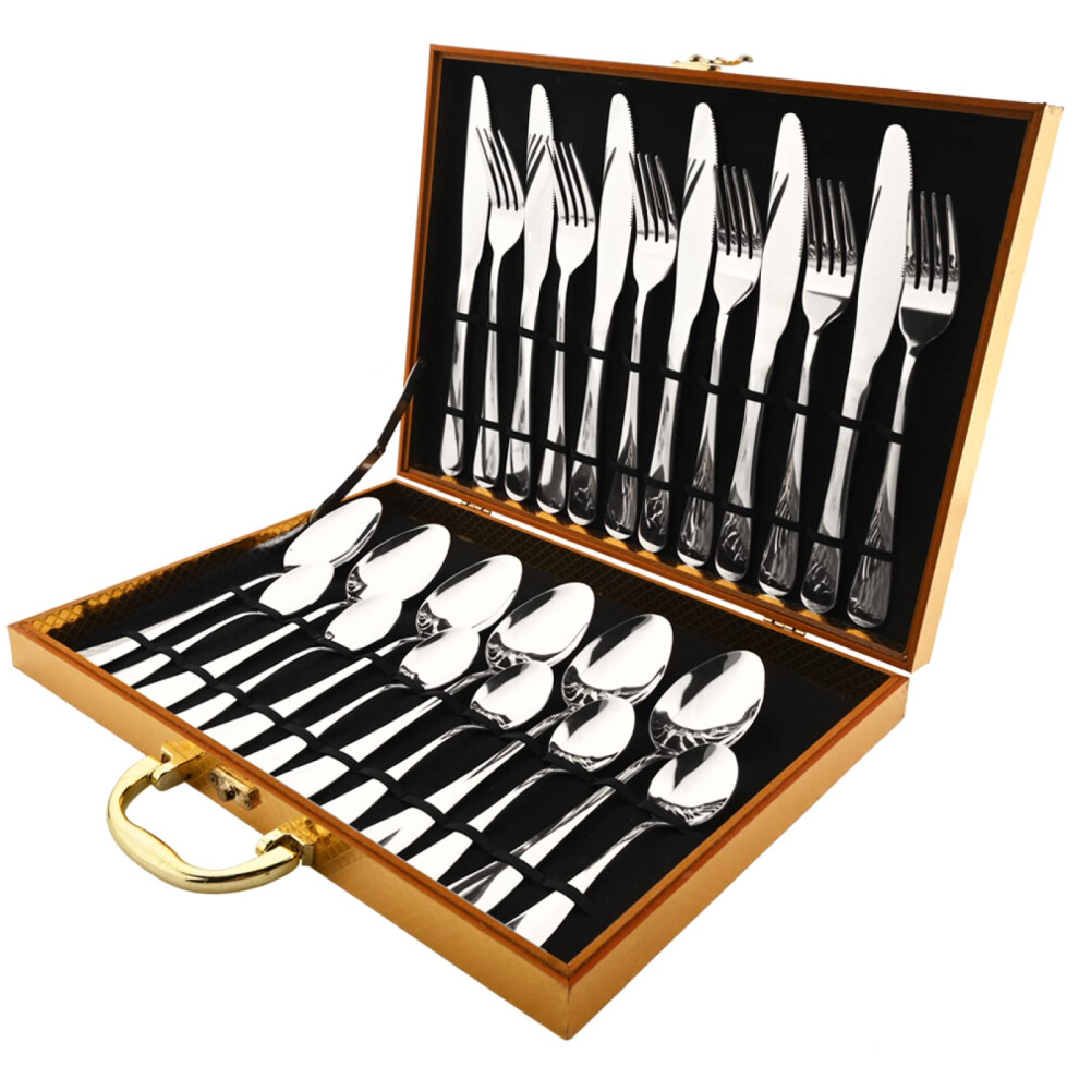 Cutlery Set 24Piece Stainless Steel Dinnerware Set With Gift Box Mirror Finish Gold Silverware Knife Fork Spoon