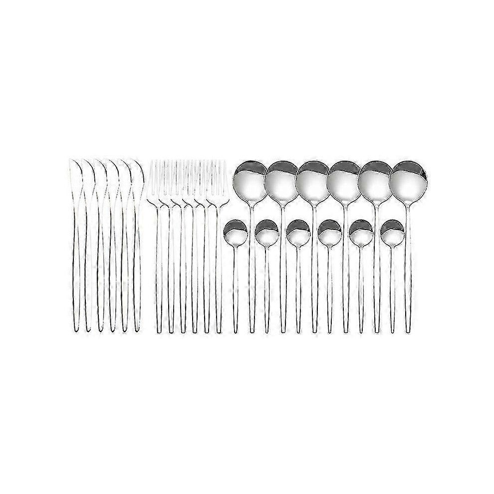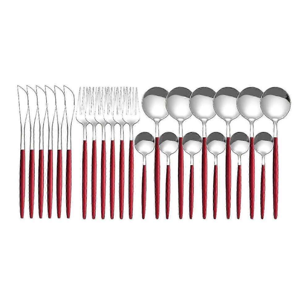 ï¼redï¼ 24 Piece Stainless Steel Dinnerware Set Kitchen Cutlery Set Knife Fork Spoon Flatware Tableware Minimalist Silverware