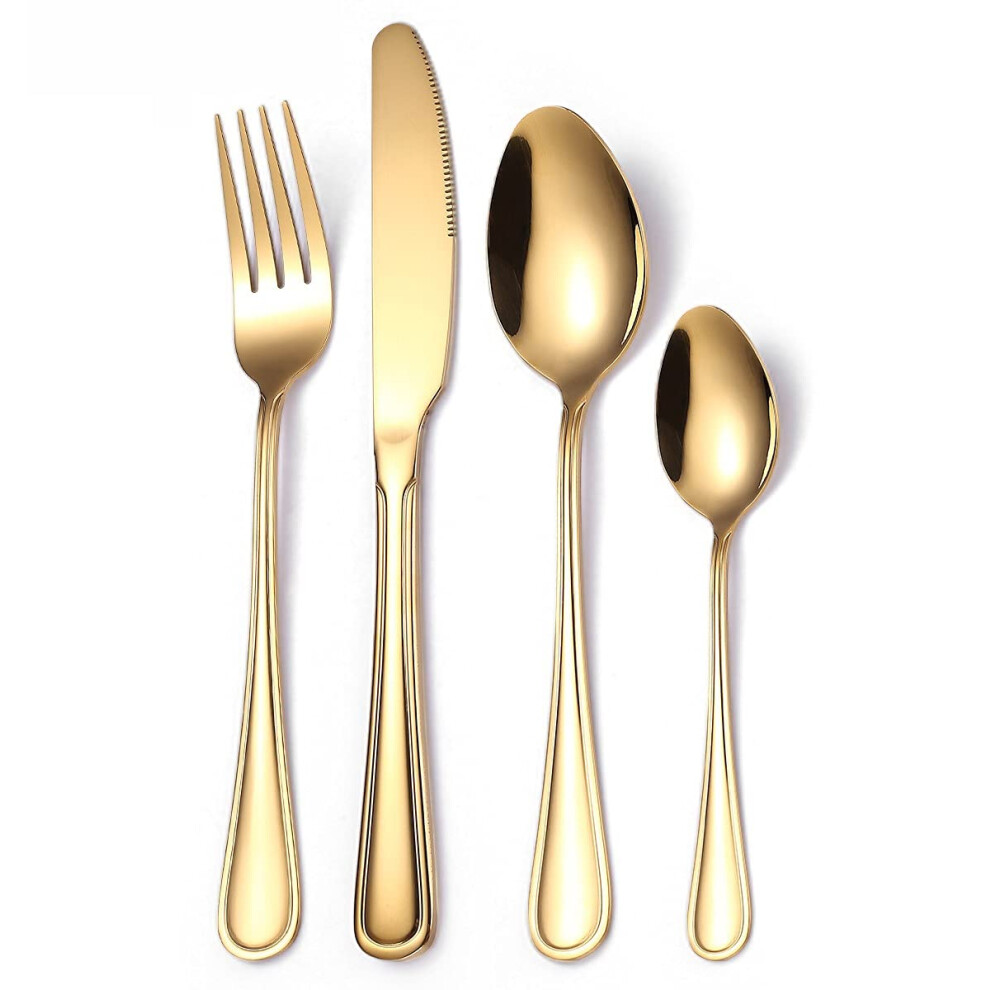 Silverware Flatware Cutlery Set 24Piece 304 Stainless Steel Gold Western Style Dinnerware Knives Forks Spoons