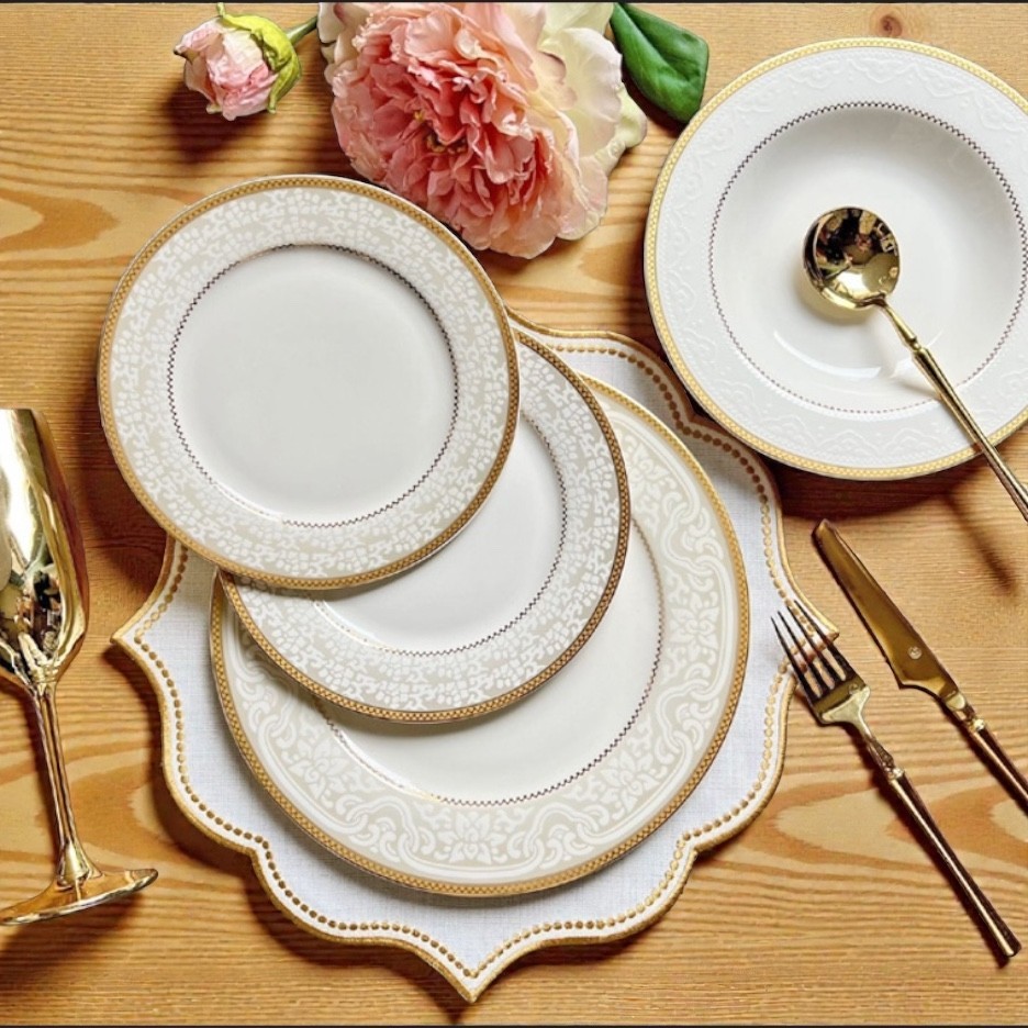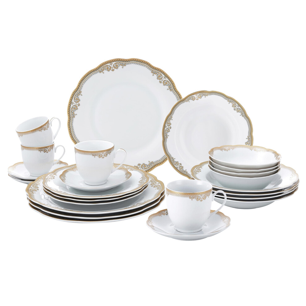 Lorren Home Trends catherine 24 Piece Porcelain Dinnerware Set, gold