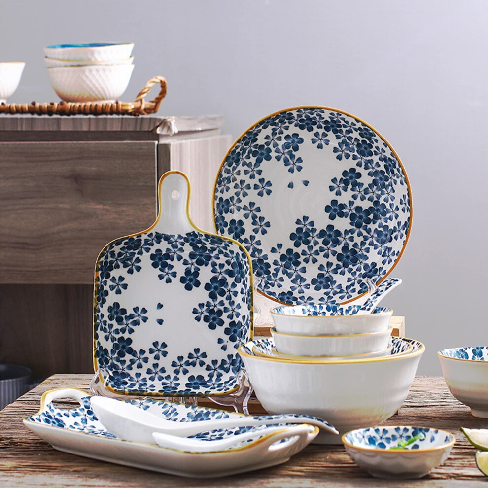 Vintage Blue 24Piece Ceramic Dinnerware Set for 8, Handmade Reactive Glaze, Chip and Crack Resistant, Microwave and Dishwasher Safe
