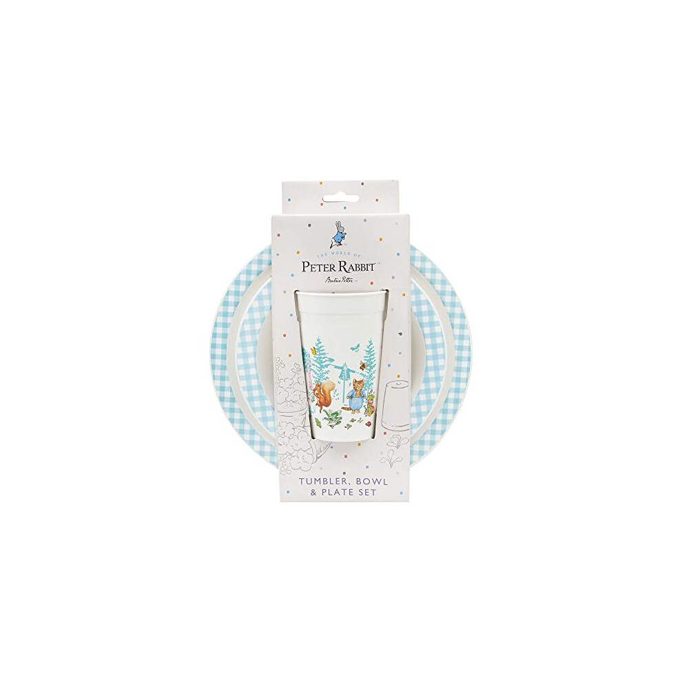 Peter Rabbit Kids Tableware Set – 3 Piece Reusable PP Plate,Tumbler & Dinnerware Set for Mealtimes – for 24 Months & Up,Blue & White