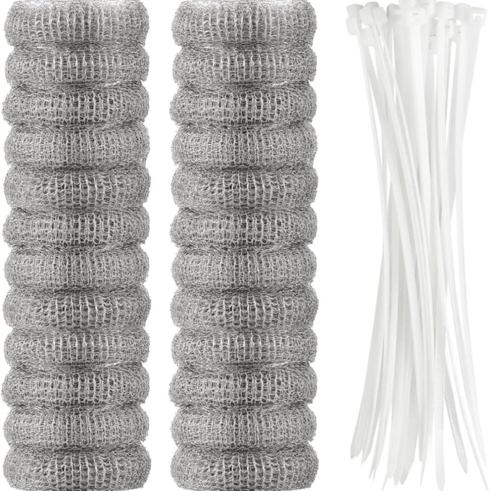 Mobestech 24pcs Stainless Steel Washing Machine Filter Mesh with 24 Cable Ties, Rust-proof Metal Strainer Screen for Laundry Drain, Compatible Washer Parts for Household Use