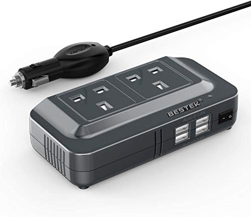 BESTEK Power Inverter 12V to 240V, 200W Car Voltage Converter Transformer with 3-Pin Sockets & 4-USB Ports for Charging Phones, Laptop, Tablets, GPS Units, TV, Camping Equipment