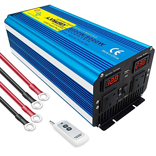 Cantonape Pure Sine Wave Power Inverter 4000W DC 12V to AC 240V converter with Wireless Remote, Dual UK Outlets & LCD display for RV Truck car home use