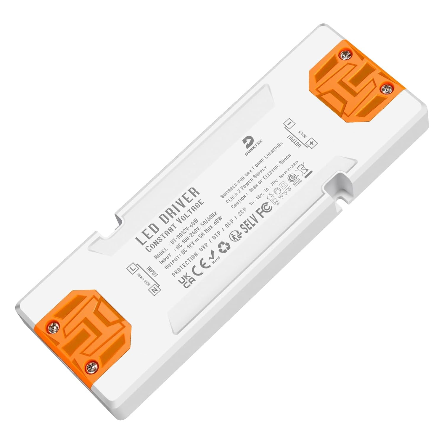 DUSKTEC 12V LED Driver 60W Transformer, Mains AC 240V to DC 12V 5A Low Voltage LED Power Supply Constant Voltage for 12 Volt Strip Lights Cabinet Light or G4 Bulbs MR16 Lamps MR11 Spotlights