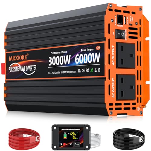 3000W Pure Sine Wave Power Inverter DC 12V to AC 240V with 2 UK Sockets, 30W Type-C, 5V 3.1A USB-A, LCD Remote Control,for Motorhome,Truck,Solar Power,Boats,Camping