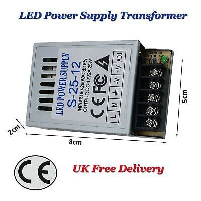 2x LED Driver Power Supply Transformer 240V - DC 12V LED Strip 25W IP20 UK