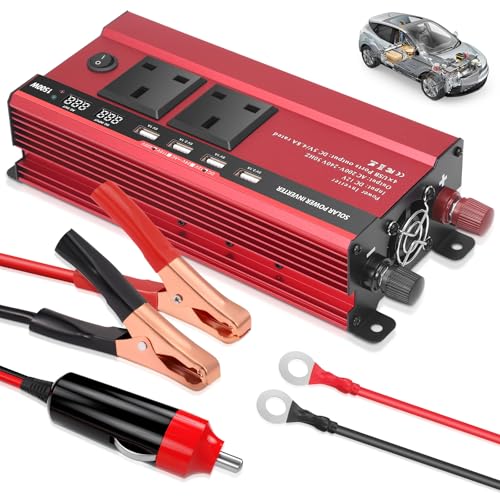 1500w Inverter 12v to 240v,Aluminum Car Power Inverter DC 12v to AC 240v with 2 UK Sockets 4 USB,Car Inverter with LED Display & 8-tier Safety Protection for Travel, Camping