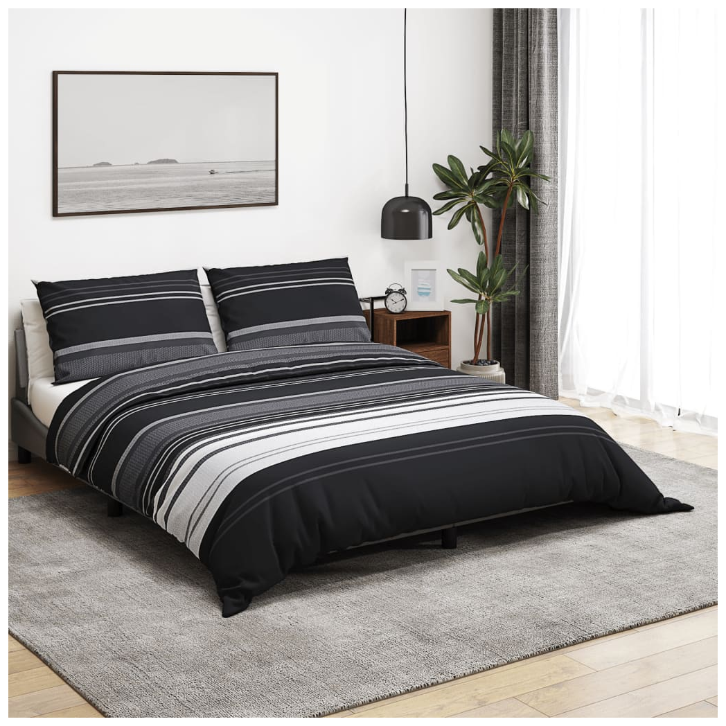Duvet Cover Set Black Stripes 240x220 cm 100% Cotton with 2x 60x70 cm OEKO-TEX1