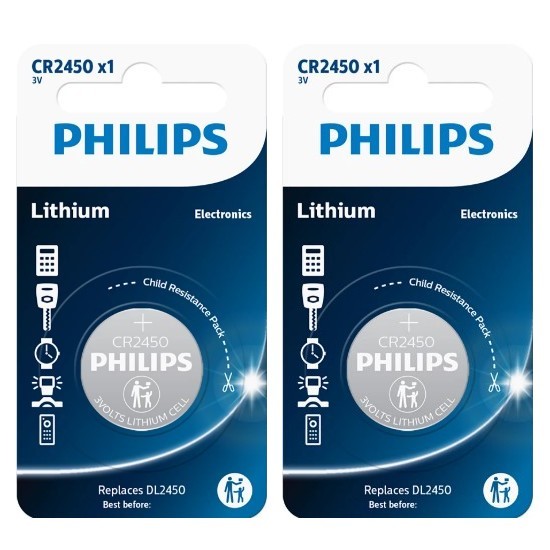 2 x PHILIPS CR2450 Lithium Battery 3V Coin Cell - 2450 DL2450 2450 BR2450 Fob