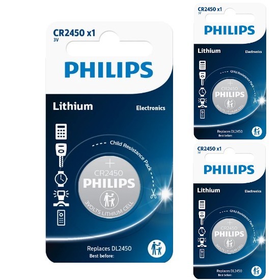 3 x PHILIPS CR2450 Lithium Battery 3V Coin Cell - 2450 DL2450 2450 BR2450 Fob