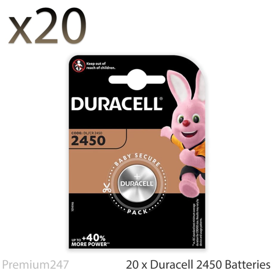 20x Duracell CR2450 3V Lithium Coin Cell Battery 2450 DL2450 Longest Expiry