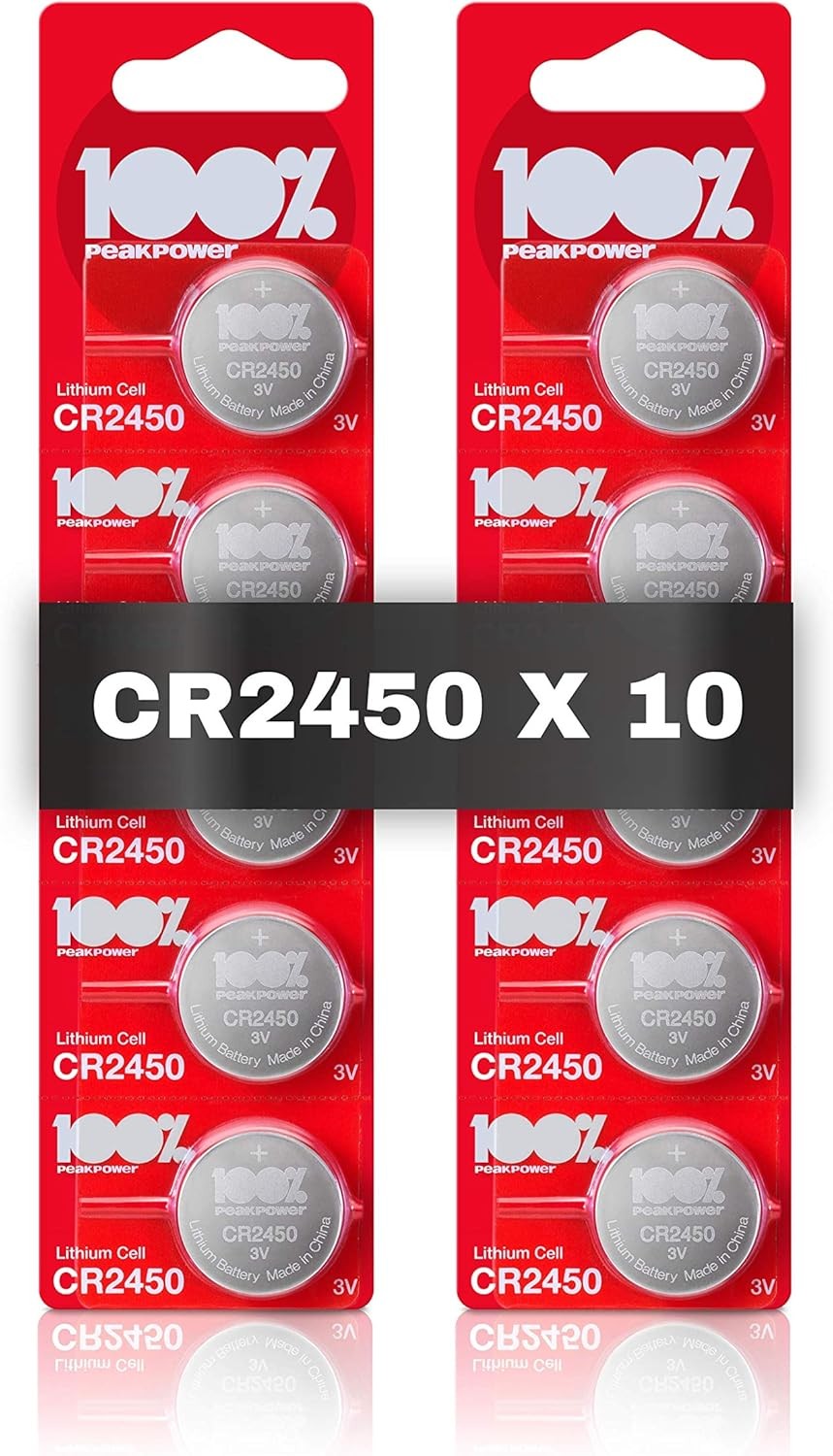Power Peak CR2450 Battery - 3V Lithium Coin Cell Button Batteries - Suitable for Car Key Fob, Kitchen Scale, Watch, Remote Control, Toys - CR 2450 DL