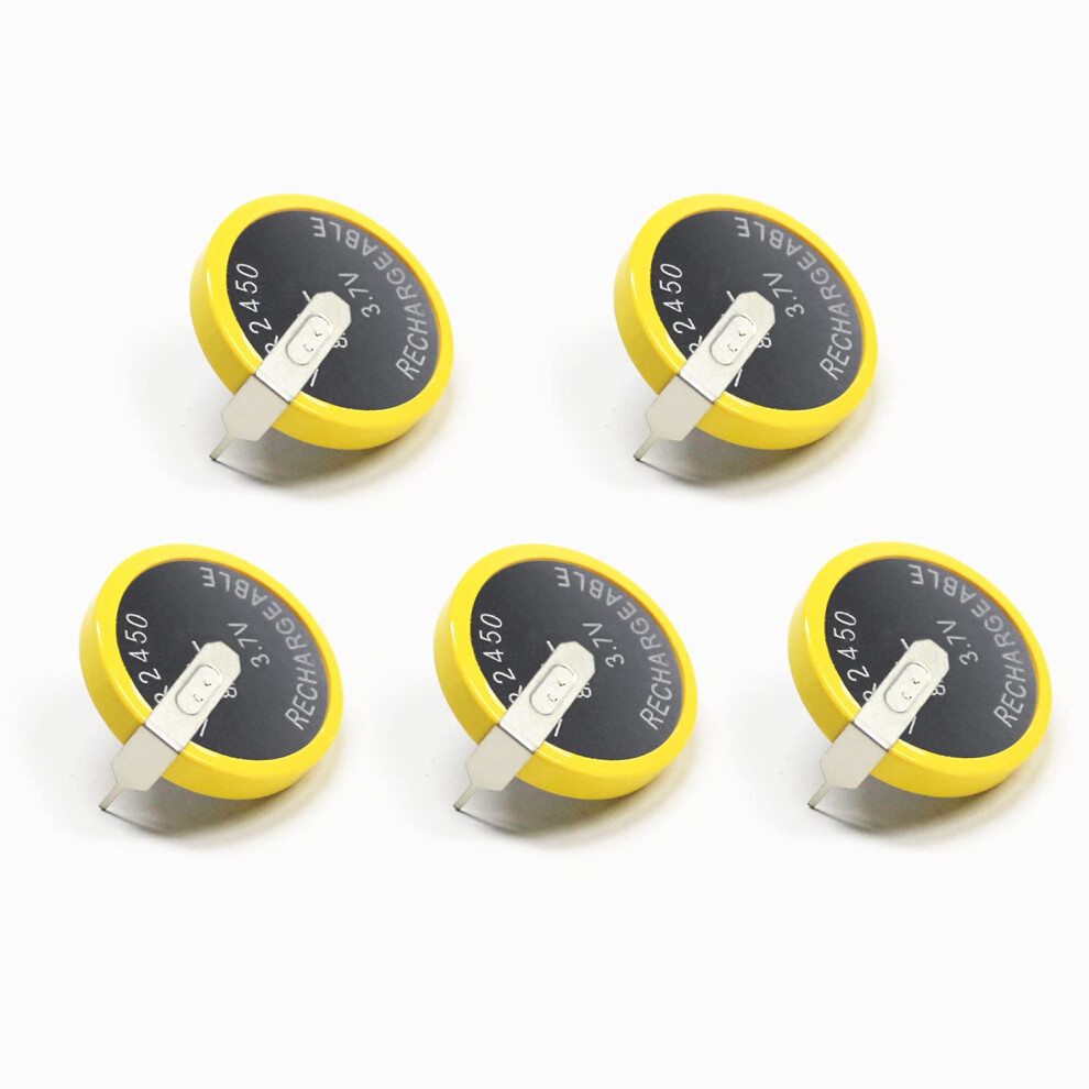 EEMB LIR2450 Rechargeable Battery with 5PCS 3.7V Lithium-ion Coin Button Cell Batteries with Solder Tabs 120mAh for Car Remote Key Fob Watch