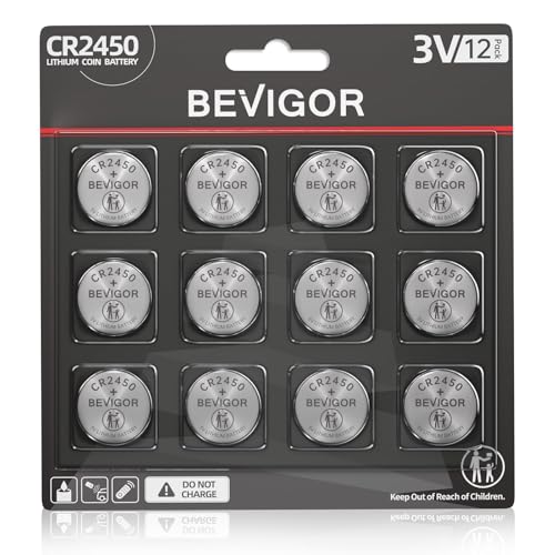 BEVIGOR 2450 Battery Compatible with Fitness Devices CR2450 Lithium 3V Coin Battery for Child Safety, Suitable for Key Fobs, car Alarm, Watch, Candle and More, 12Pcs