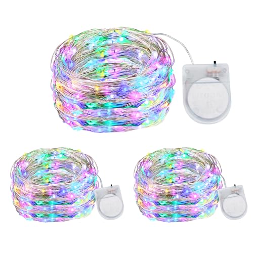 Coloured Fairy Lights CR2450 Battery Operated, 3Pack 3M 30LED Waterproof Copper Wire Fairy String Lights for Indoor Outdoor Lighting, Christmas, Party, Wedding, Bedroom, Jars Bottle Decor(Multicolor)