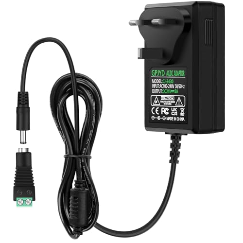 GPJYD 24V Power Supply 72W 3A, AC DC Adapter 100-240v 50/60Hz LED Transformer with DC Connector, LED Power Supply 24V Adapter for 5050 2835 LED Strips