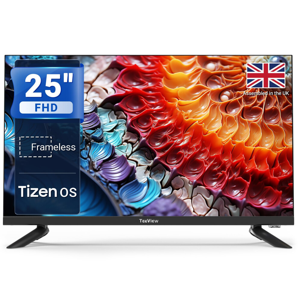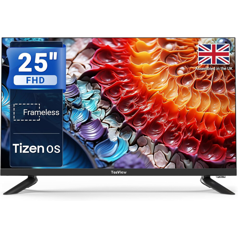 TeeView 25 inch Full HD/FHD 1080P Smart TV Tizen OS TV with Netflix Disney+ Gaming Hub Dolby Audio, Made in the UK